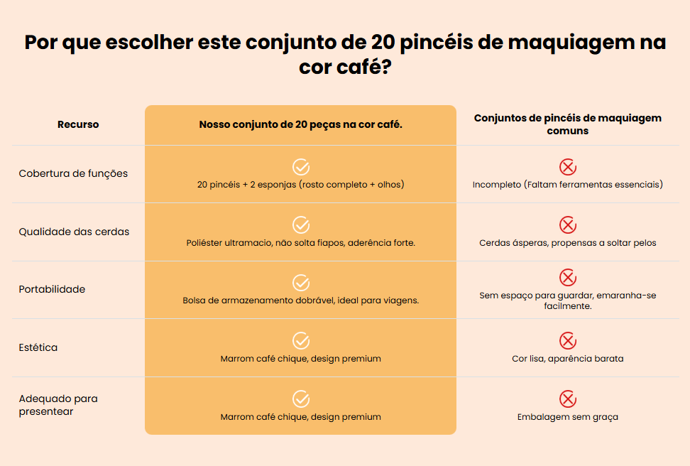 Por que se contentar com ferramentas de maquiagem incompletas e de baixa qualidade? Este conjunto de 20 pincéis de maquiagem na cor café oferece resultados profissionais, armazenamento prático e design elegante — tudo pela metade do preço!